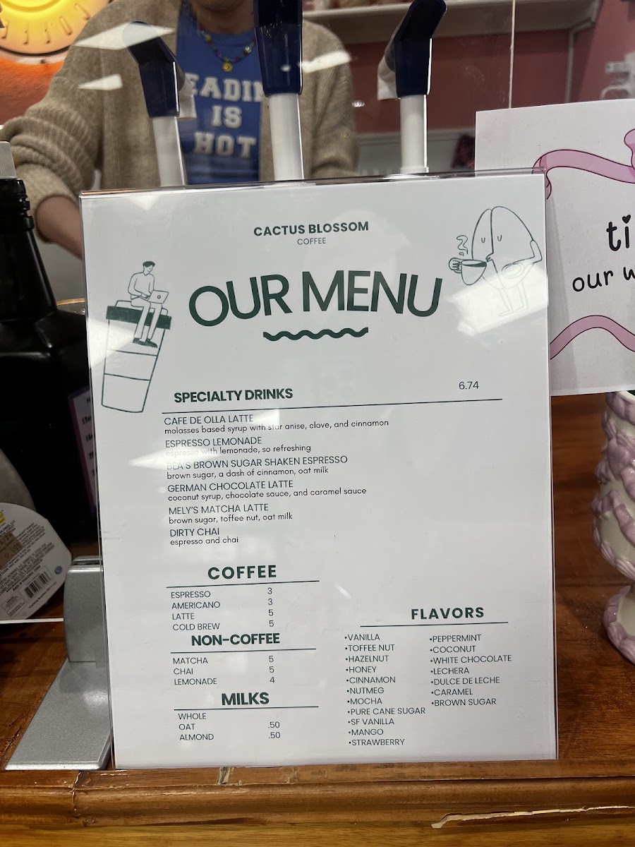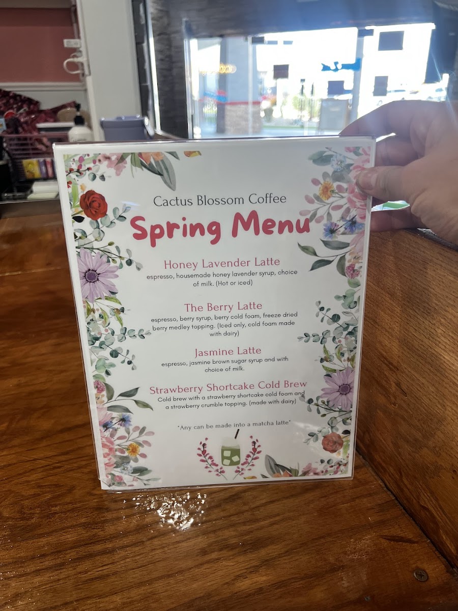 To accommodate different lifestyles and preferences, the café also offers milk alternatives, including Whole, Oat, and Almond options, ensuring everyone finds a drink that feels personalized. Whether it’s the elegance of lavender, the richness of German chocolate, or the nostalgia of peppermint, the menu at Cactus Blossom Coffee balances innovation with familiarity, making it a versatile destination for both everyday sips and seasonal indulgence.