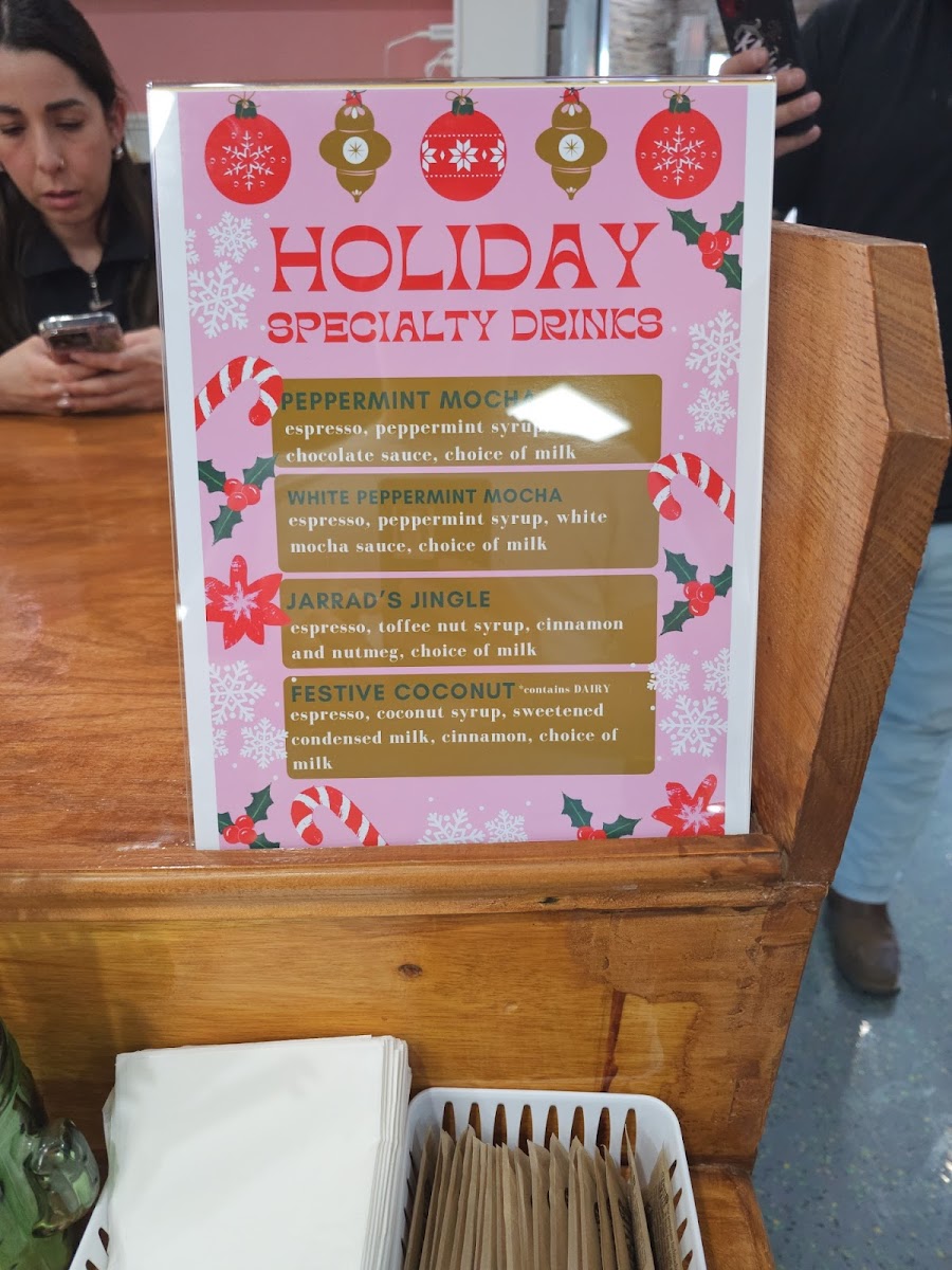 For traditional coffee lovers, staples like Espresso, Americano, Latte, and Cold Brew remain central to the menu, offering the classics done right. The Non-Coffee section broadens the appeal with comforting Matcha and Chai, as well as bright, refreshing Lemonade for a lighter alternative. Seasonal highlights come through the Holiday Specialty Drinks, where festive choices like the Peppermint Mocha, White Peppermint Mocha, Jarrad's Jingle, and the tropical-inspired Festive Coconut bring a sense of celebration into every cup.
